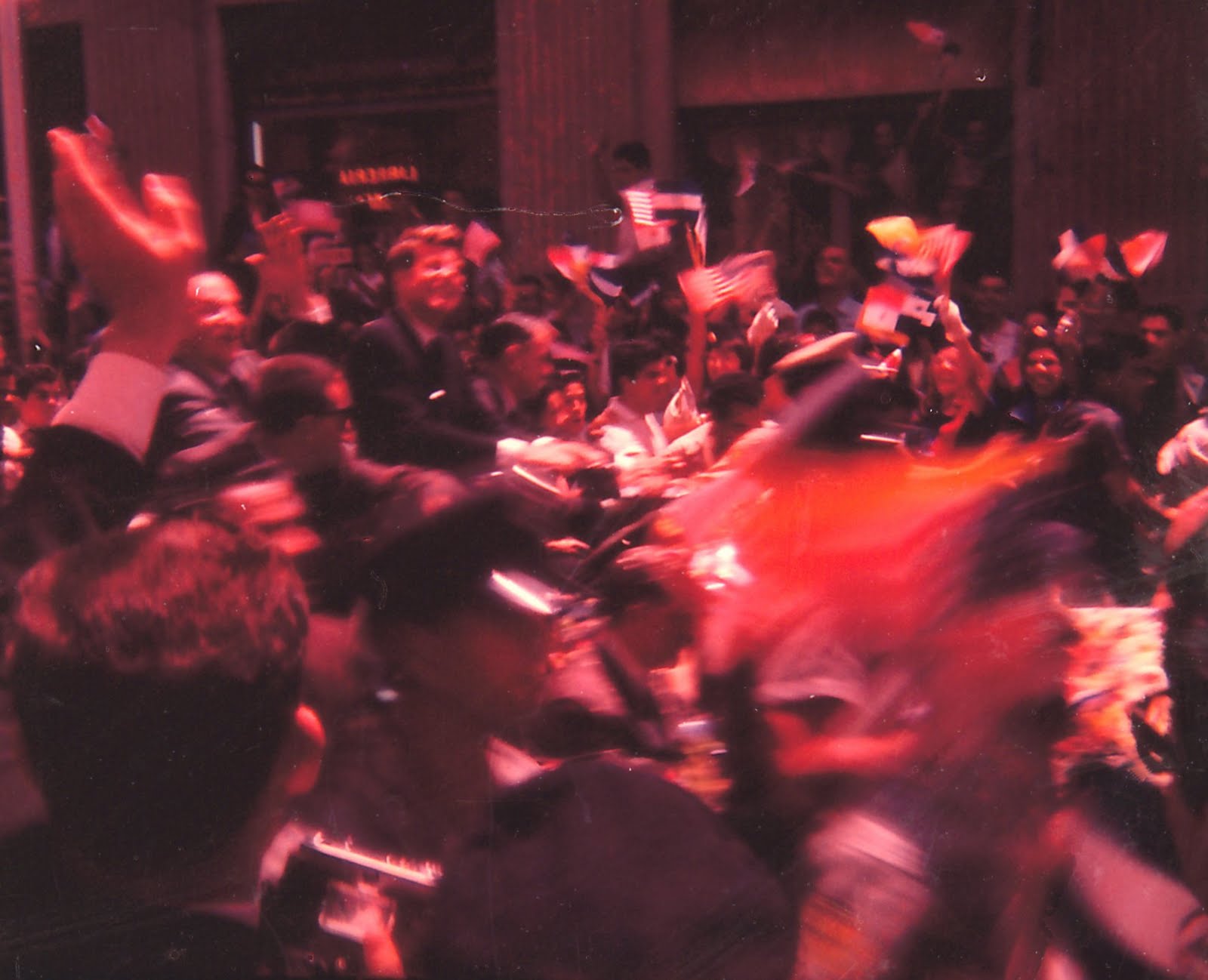 There were even more people out city wide for Holy Week than for the President, all close up, the parades, the embassy, the floats, the processions that went 15 miles from San José to Cartago, some people walking barefoot. I started walking early Good Friday at dawn, not to Cartago, but to every barrio of San José. Taking pictures with a Brownie camera elicited dirty looks so I didn’t much. The dozen or so slides lay dormant in archival sheeting, head scarves of women walking with the floats, faces of police protecting them, impassive ushers carrying the images on poles, the Holy Mother’s gown embroidered in gold with vines and flowers, the faces of children in cradles at her feet. These are right next to the slides of the face of the man who appears under Kennedy’s arm, a lucky shot, the President’s face framed by the American flags they were waving. The man has bushy eyebrows, a black moustache, a beard, a kind of top hat. It is not Lincoln.